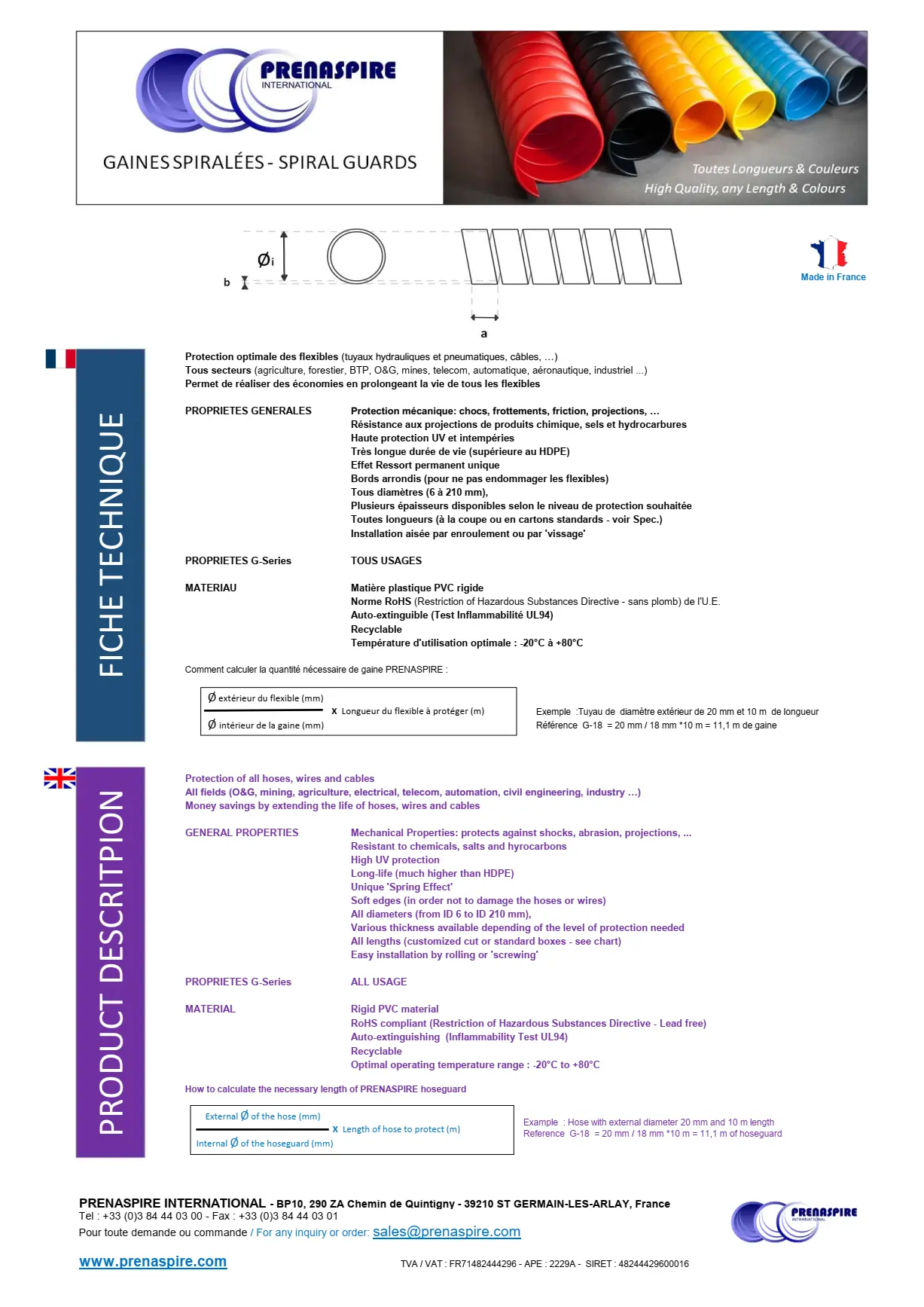 Idéale pour les applications hydrauliques, pneumatiques, électriques et de télécommunication, PRENASPIRE© améliore également la sécurité des environnements de travail en minimisant les risques d’éclatement des flexibles. Optez pour la qualité et la fiabilité avec PRENASPIRE©, votre solution 100% Made in France adaptée aux exigences industrielles les plus strictes.
